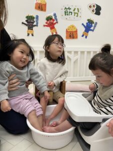 外はとっても寒かったので、お部屋の中で足湯をしました。